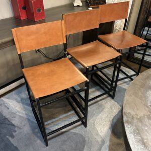 PAIR Lt. Brown Leather 26″ Bar Stools 6787-1
