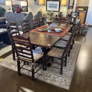 Theo. Alex Dk. Wd. Tbl, w/10 Ladder Back, Rush Seat Chrs. 6861-2