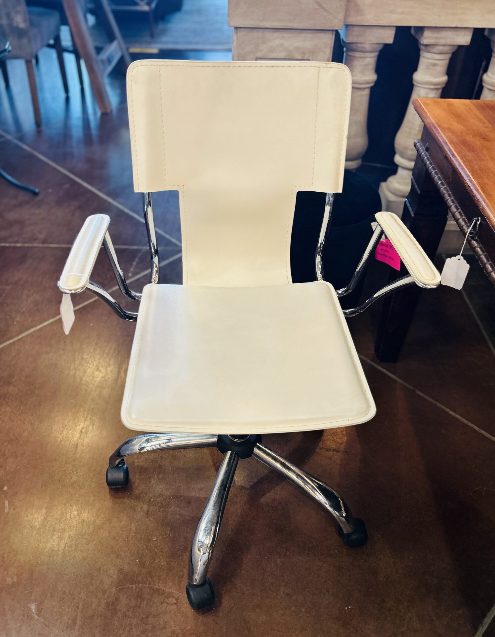 Adj. White Faux Leather, Chrome Base 3592-57