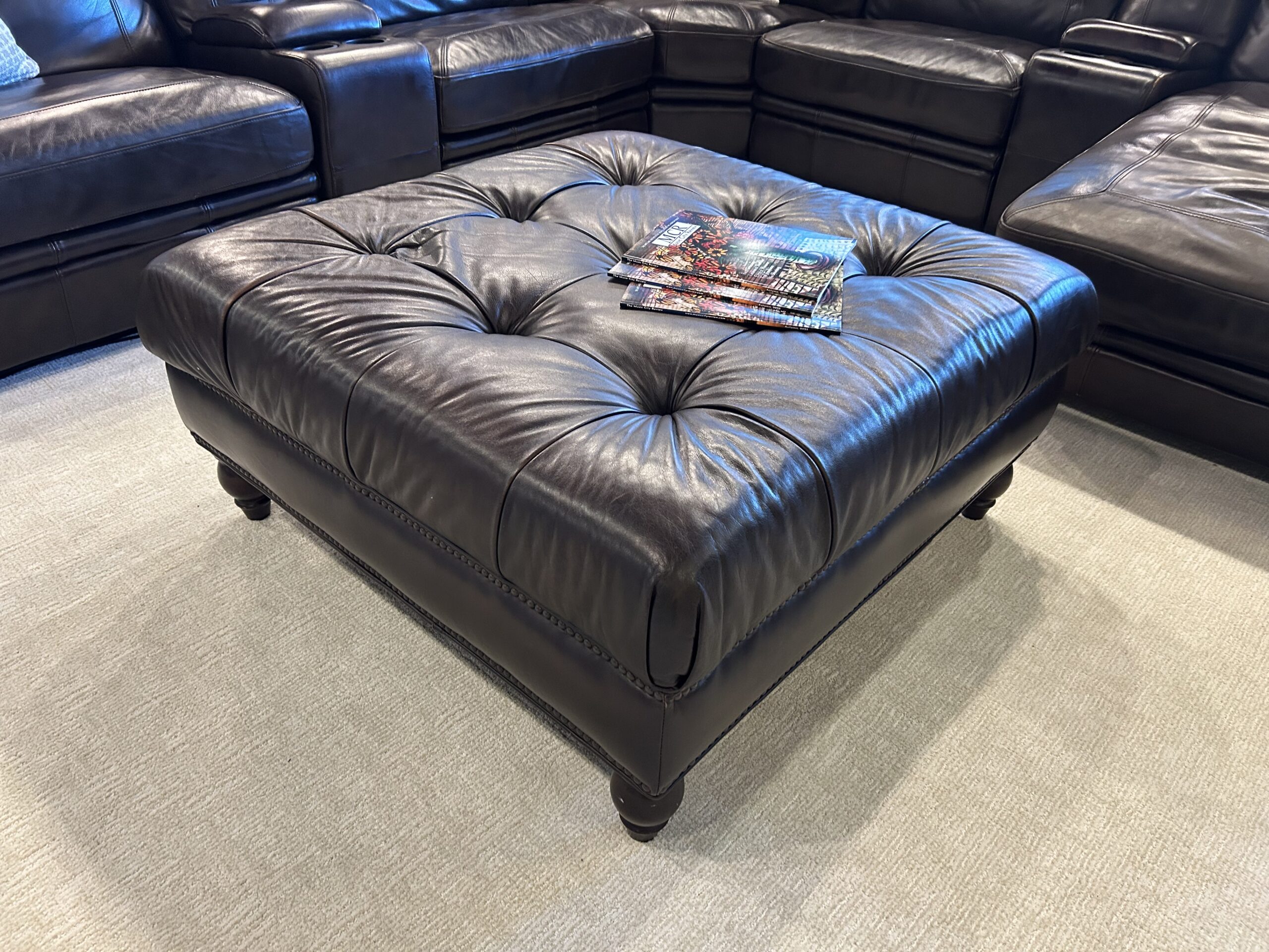 / Brown Leather Tufted Ottoman 4629-212