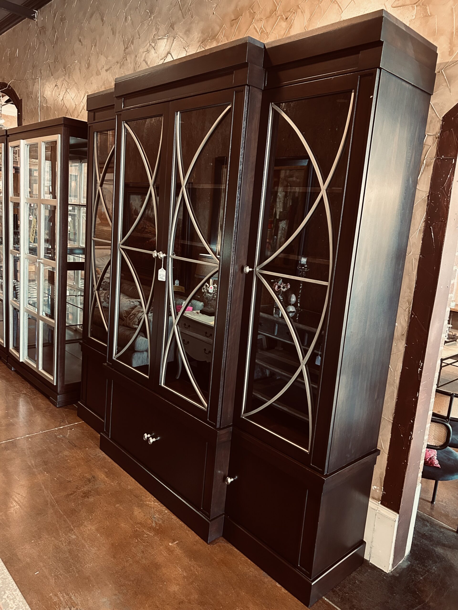 / Dk. Wd., Silver Trim w/4 Glass Cabs., 6907-12