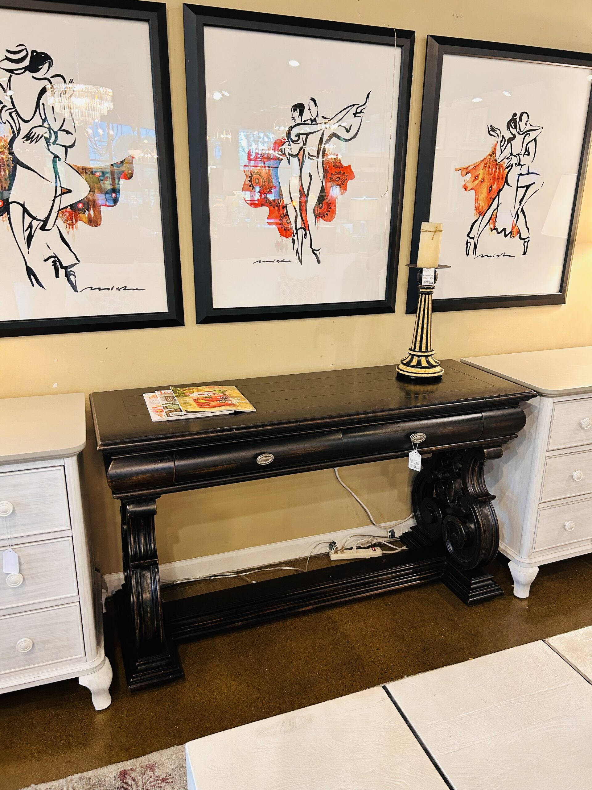 Dist. Wood Console w/Gray Pedestal Legs 3330-225