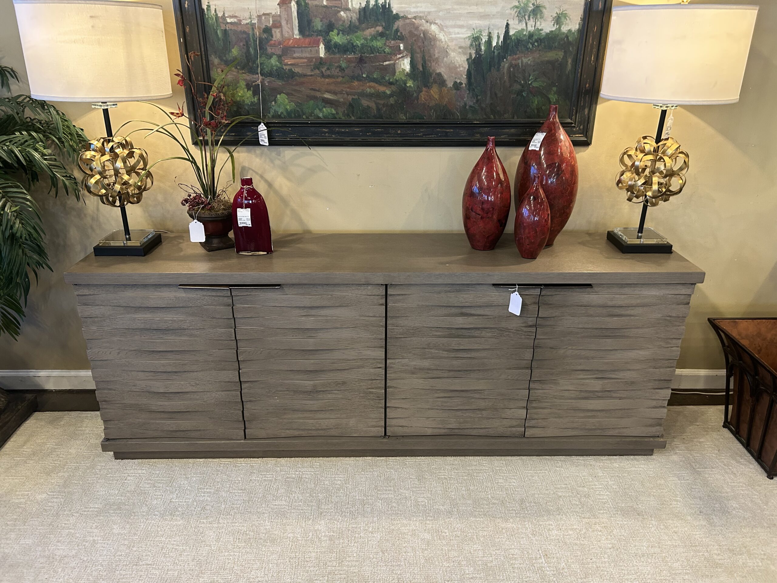 Gray Wood 4 Curved Slat Cabinets 6315-11