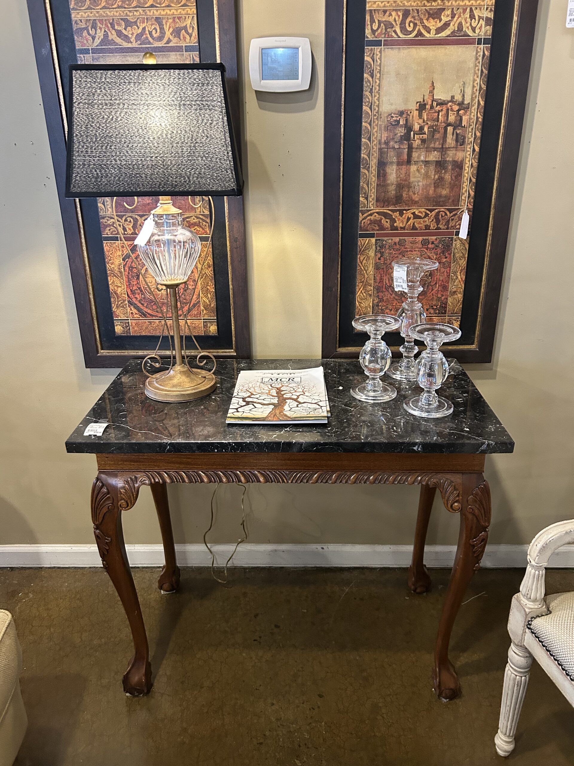 Marble Top, Carved Leaf, Claw Feet Accent Tbl 526-671