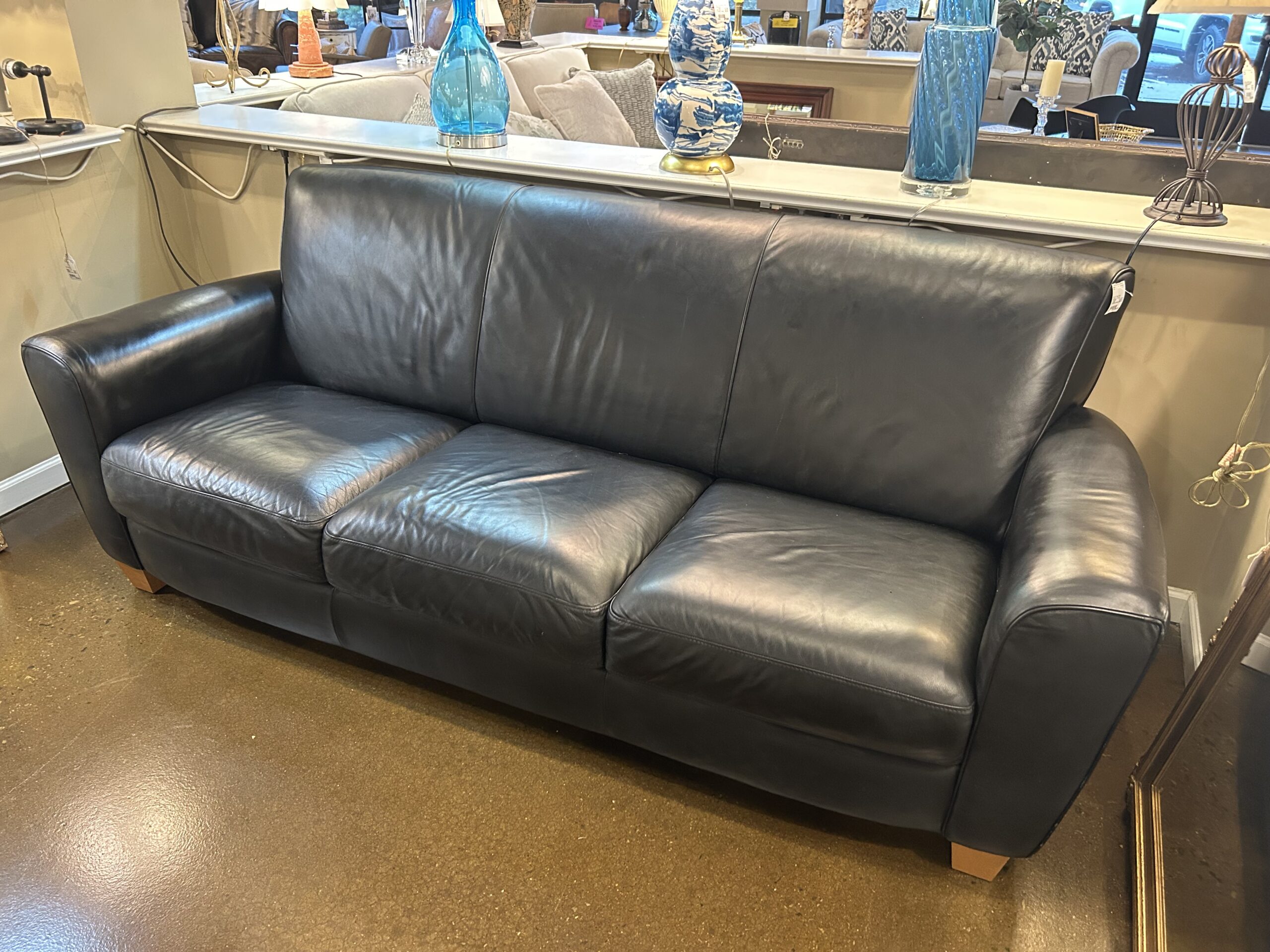 / Natuzzi Deep Navy Leather Sofa6846-1