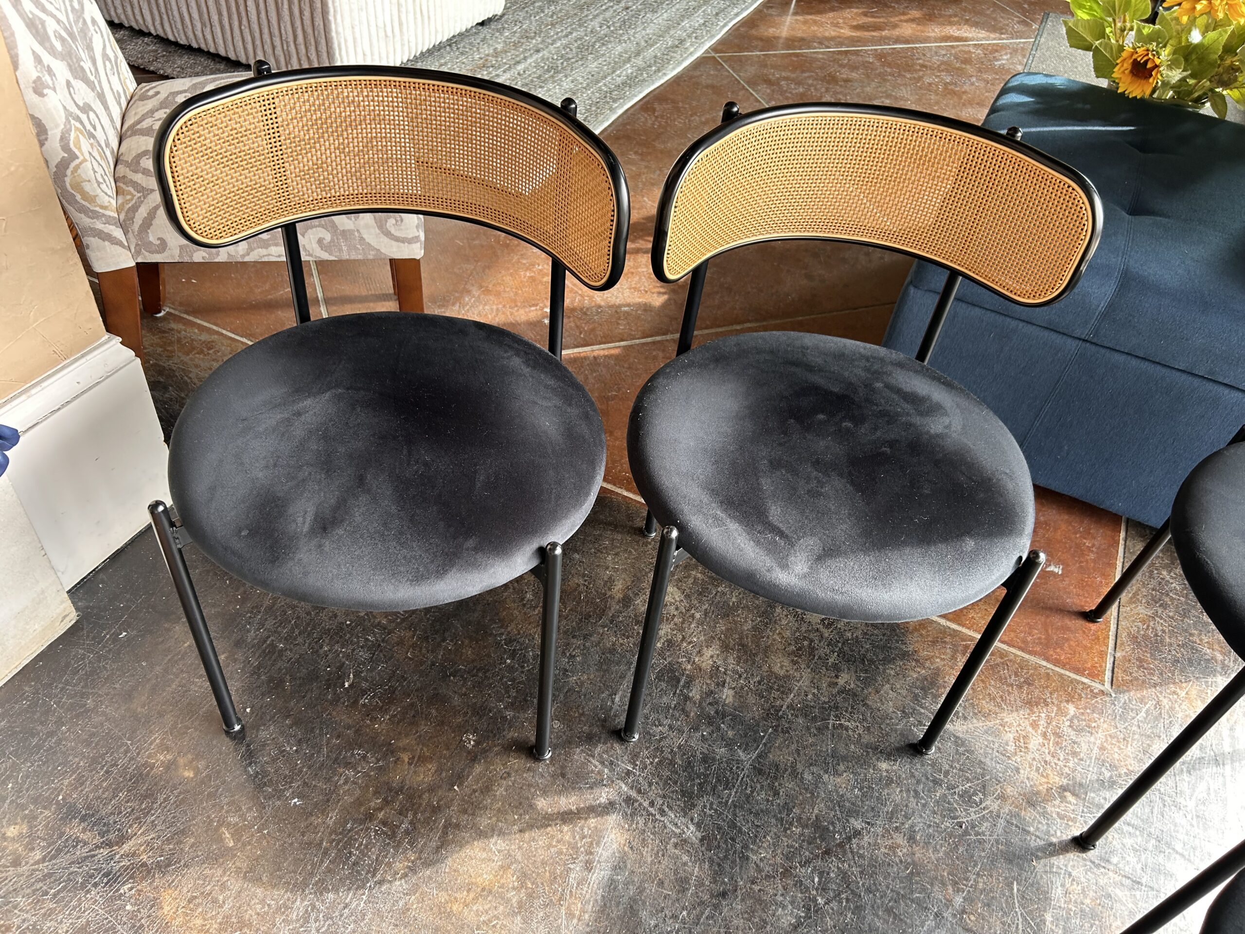 PAIR Black Faux Suede w/Cane Back 6894-2 (2 PAIRS Available)