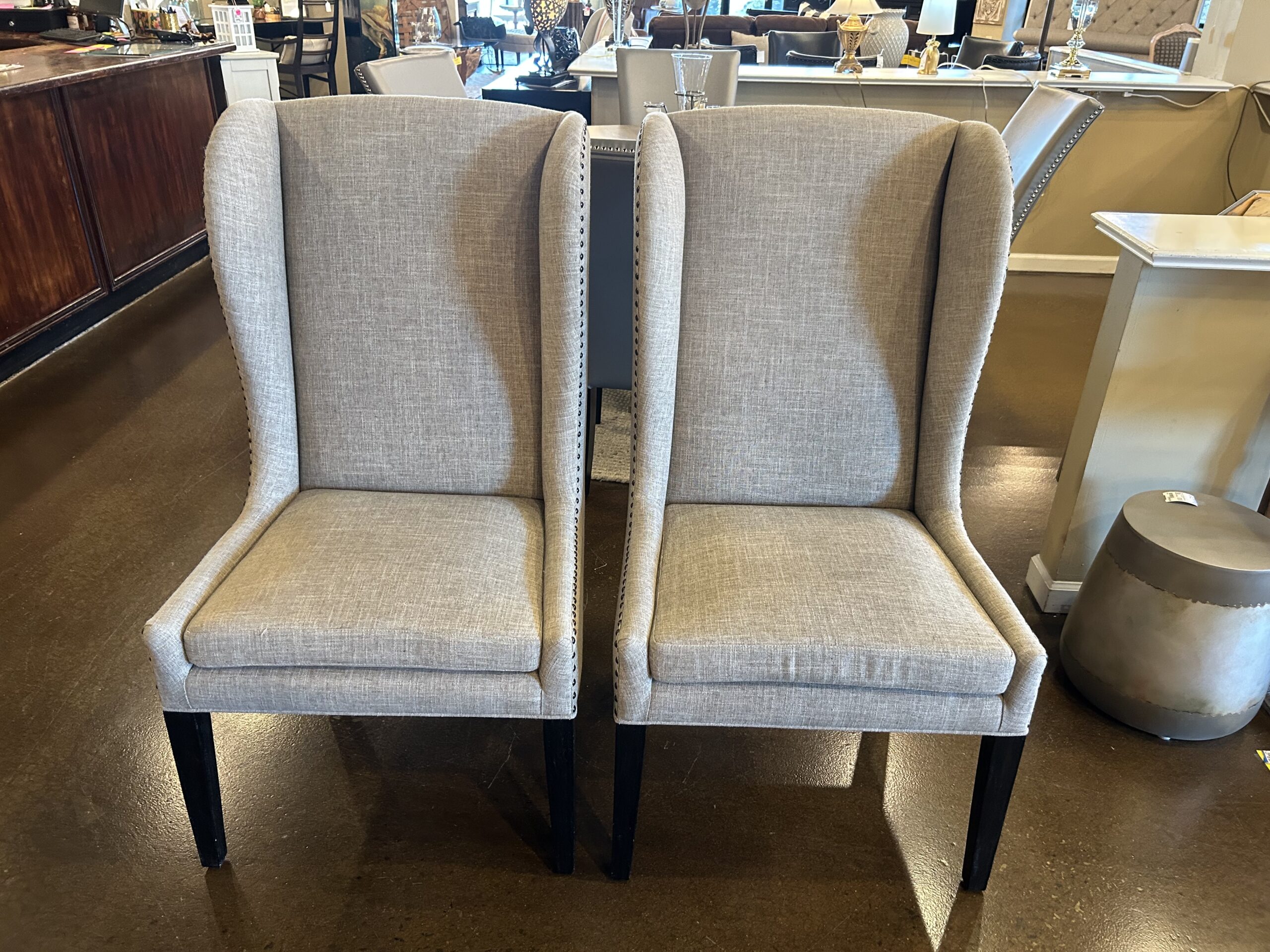 PAIR Greige Fabric Wingback w/N.H. 3122-21