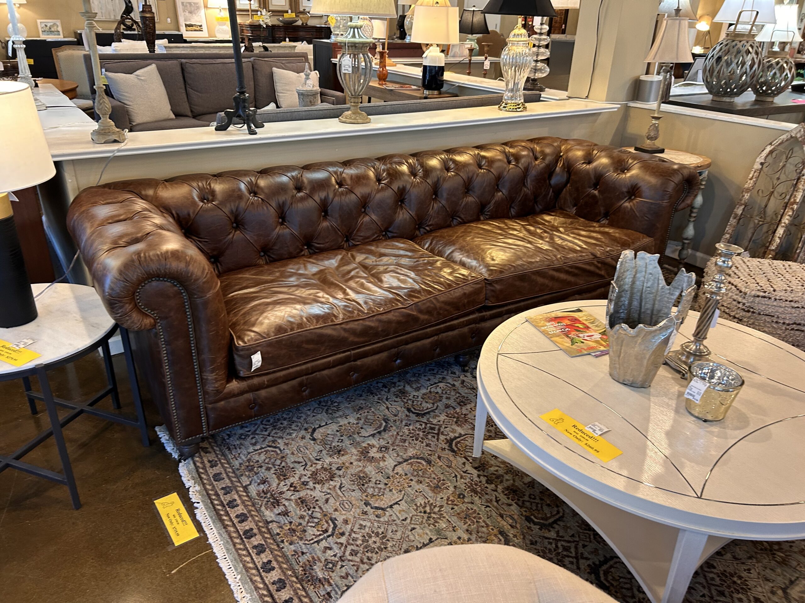 / Restoration Hrdwr Brown Lthr Chesterfield Sofa 6233-60