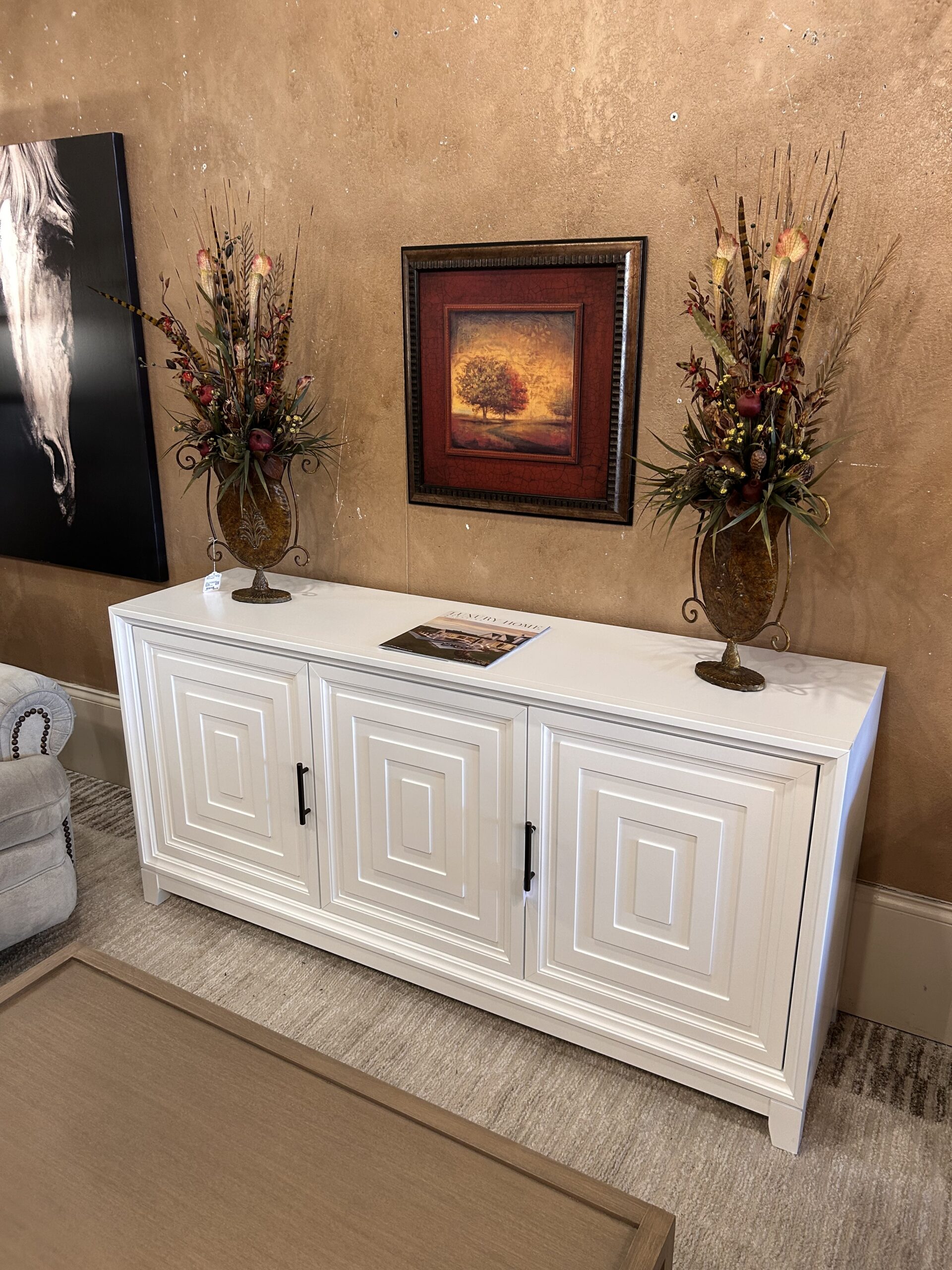 West Elm “Pictograph” Gray Geo w/4 Cab., Metal Legs